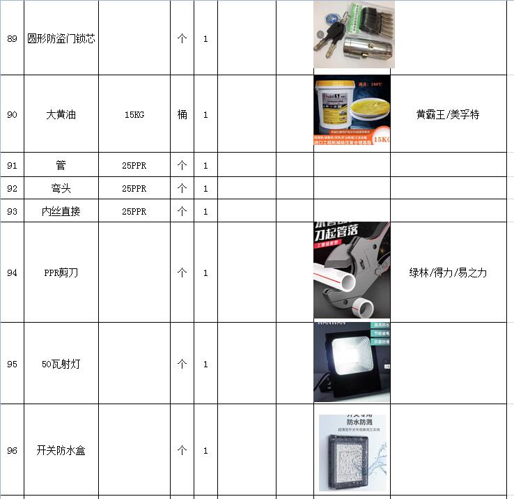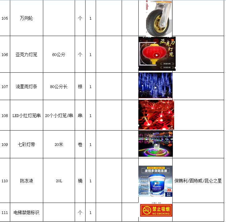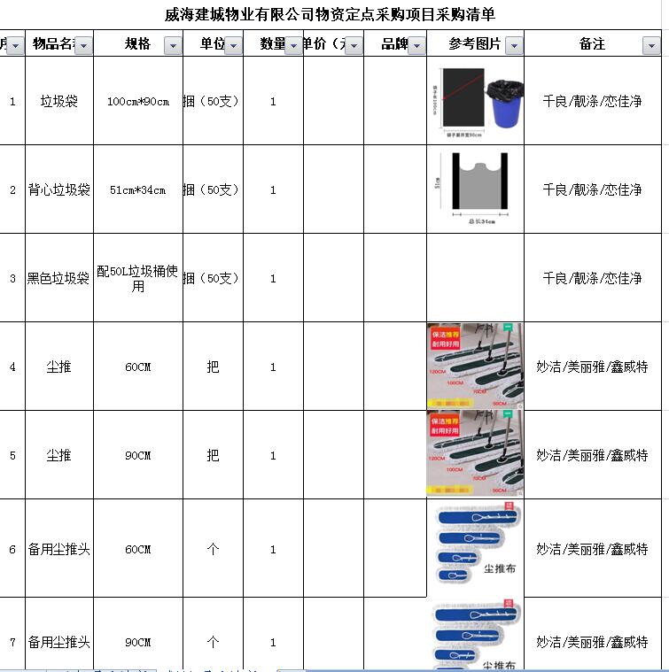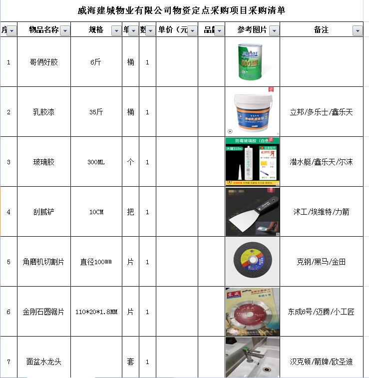 (5)采購內容:威海建城物業物資定點采購,主要包括五金、水暖管件、保潔、維修、綠化所需物資、應急維修的其他物資等,采購清單詳見附件。
