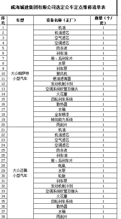 (4)采購內容:威海城建集團10輛公車定點維修保養等服務內容,采購清單詳見附件。